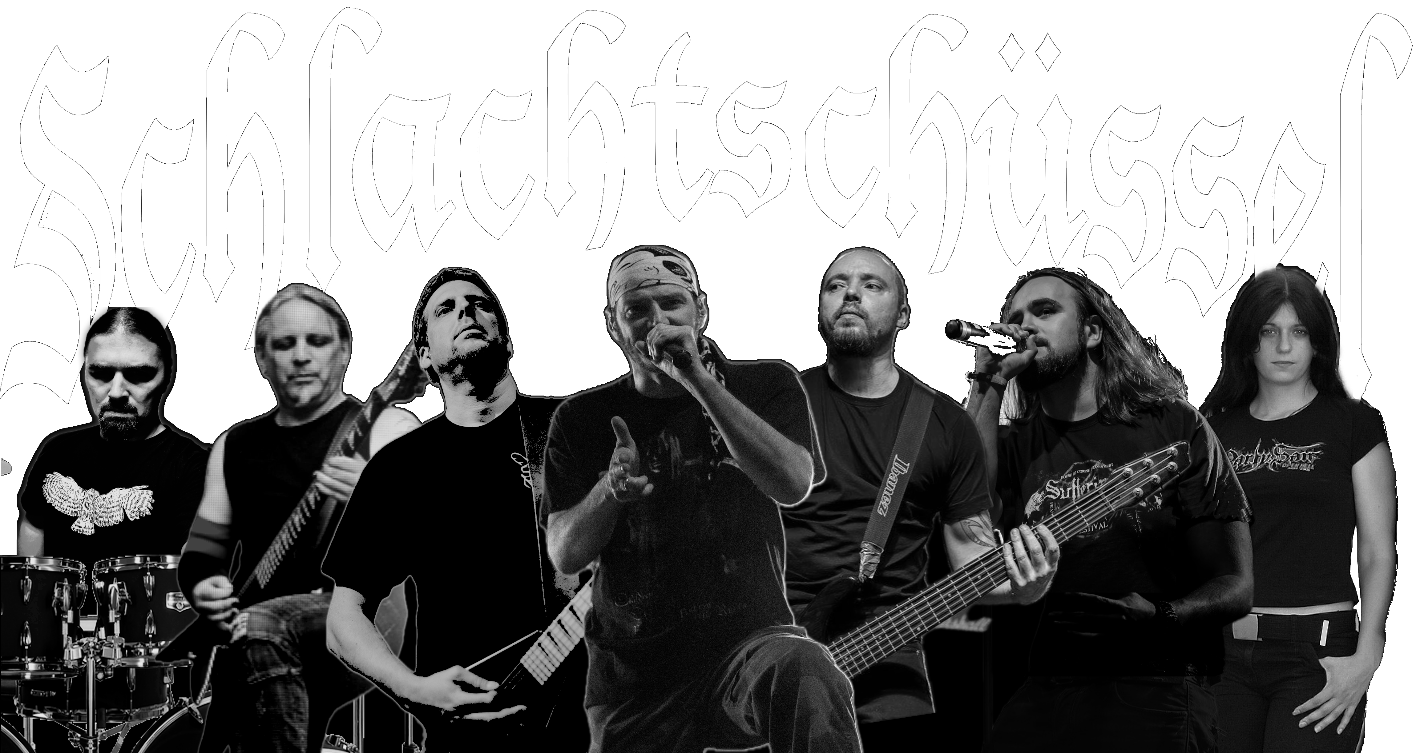 SCHLACHTSCHÜSSEL ist eine Metal-Coverband der etwas härteren Gangart. Gegründet 2001 und nach über 250 Gigs in diversen Lokalitäten in Franken und darüber hinaus, hat sich die Band einen Namen in der Szene gemacht. Mit Brechern von AMON AMARTH, KREATOR, KATAKLYSM, ICED EARTH, DIMMU BORGIR, CHILDREN OF BODOM oder ILLDISPOSED, bis hin zu IN EXTREMO, AMORPHIS, IN FLAMES, TRIVIUM, PAIN und vielen Weiteren, kriegt jeder Metalhead ordentlich was auf die Ohren.