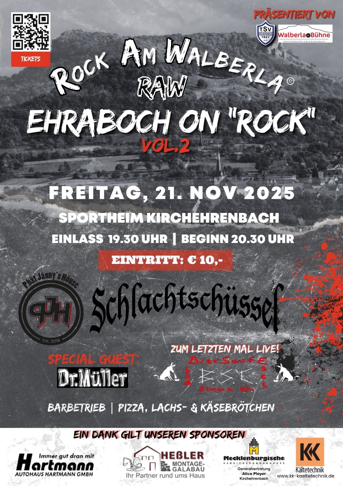 | 21.11.2025 | Kirchehrenbach (Sportheim) | BSE Jubiläum (mit BSE, Dr.Müller und Phät Jänny's höuse) | Abendkasse 10€ / Vorverkauf 10€ |
